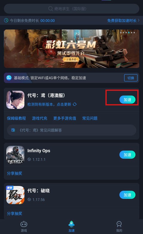 1、首先在本站下載安裝代號鳶港澳服,然后打開加速器,在加速器內(nèi)啟動(dòng)游戲。