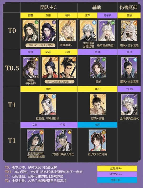 2、陳登和奶媽必須帶,剩下三個(gè)位置選不被克制屬性刖單體,單體一定是要單體爆發(fā)傷害高的。