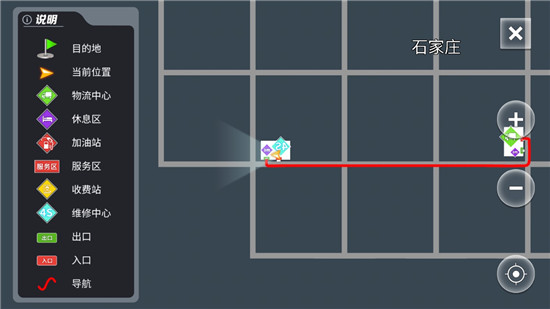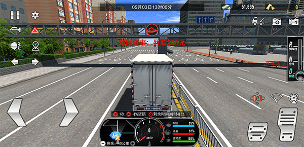 5、運輸期間,玩家可借助下方地圖導航前往運輸終點。在運輸途中,務必系好安全帶(安全帶是剎車上方的紅色圖標),同時切勿違反交通規則,避免撞車等情況。否則,不但會被返款扣錢,還會導致貨損。