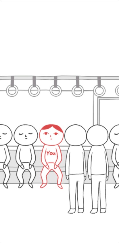3、首先進入第一關卡,場景設定在一輛公交車上。此刻,憑借察言觀色能力的你,需要主動往左側騰出兩個位置給其他路人。