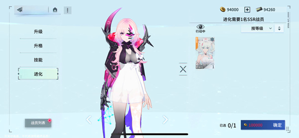 3、升格需消耗同名角色,從SR升至SSR要四個同名角色。不過,角色一旦升到SSR便無法再進行升格,此時需進行進化。進化相對便利,只要是相同等級稀有度的角色都能作為材料。至于后續進化的具體方向和級別,目前暫不清楚。