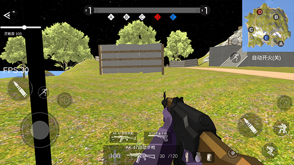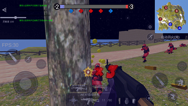 4、游戲開始后利用左邊搖桿操控角色的移動,右邊為射擊、跳躍、蹲下等操作