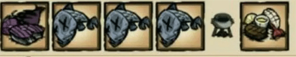 在海難中,制作回血回san值的神級(jí)食物,有兩種簡單配方:一是一塊肉搭配三條魚,二是兩塊肉搭配兩條魚。這里的肉可以是怪物肉,但食材必須全為肉類,既不能添加素菜,蛋類也不可以用。