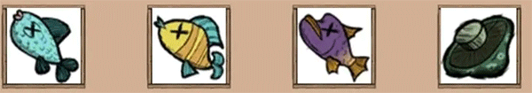 食材可以選擇4條魚,也可以是四只帽貝,三條魚搭配一根樹枝也行。當(dāng)沒有肉但有魚時(shí),就可以用這些材料制作食物。要是有海帶的話,做加州卷會(huì)更實(shí)惠一些。