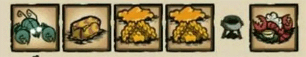 沒錯(cuò),這可是饑荒中回血回理智的超級(jí)食品。制作方法是用一只活龍蝦(死龍蝦無法放入鍋中)搭配一塊黃油,再加上填充物。不一定要像圖中那樣用蜂蜜,只要填充物不是肉類和冰就行。不過黃油獲取難度較大,因此不太推薦這種做法。