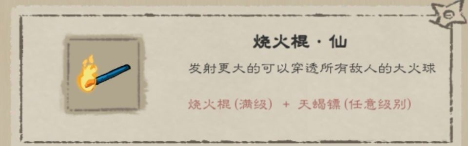 5、燒火棍+天蝎鏢=燒火棍·仙