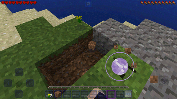 點擊并長按某一位置,可進行拾取或挖掘,挖掘的物品會在下方進行顯示。