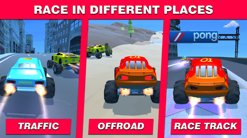 擁有豐富多彩、引人入勝的3D視覺效果,搭配逼真的怪物卡車物理效果,使賽車動作栩栩如生,帶來震撼視覺體驗(yàn)。