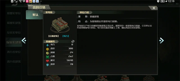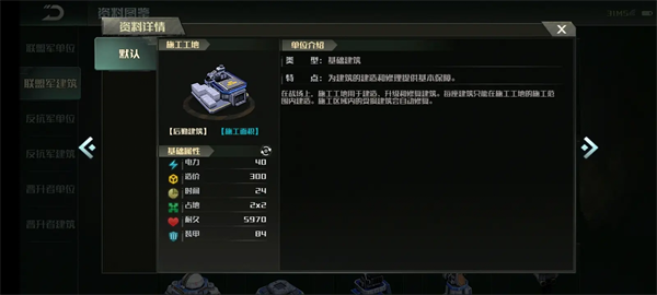 本文專門統(tǒng)計(jì)所有建筑的詳細(xì)數(shù)據(jù),聯(lián)盟軍和晉升者的建筑數(shù)據(jù)基本一致,所以放在一塊說反抗軍因?yàn)榻ㄖ?shù)據(jù)有些差別,單獨(dú)列表