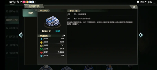 1、指揮中心:玩家的基地,在國服里玩家的基地如果被打爆了,那么就那么意味著輸了,所以生命和護(hù)甲值都挺重要的