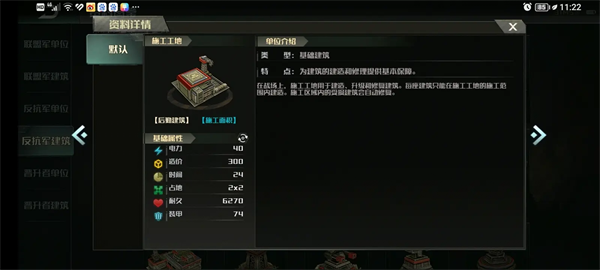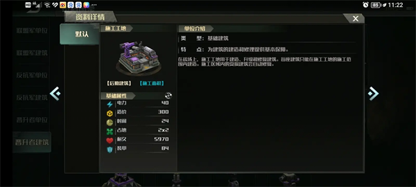 可解鎖建筑:施工工地上限設(shè)定為2,突擊車工廠上限為2,特種車工廠上限為2,空軍工廠上限為2,船塢上限為2,基礎(chǔ)防御塔上限為3,炮塔上限為2,防空塔上限為4,海上防御塔上限為3
