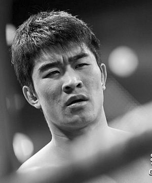 上官鵬飛,1988年出生,從小去少林寺旅游就很羨慕武僧們的武術表演,參加河南散打隊后,先后拿到幾個冠軍獎,2009年和廣東隊的董傳超比賽獲得中國武術散打聯賽75公斤級的冠軍后名聲大震。2008年,上官鵬飛獲得了全國武術館校賽70KG級冠軍。上官鵬飛也曾代表國家隊出戰與泰拳的對抗。在2010年3月的龍虎爭霸中泰拳王爭霸賽中,在第一回合就以優勢戰勝泰國選手,實力不凡。