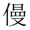 ◎ 康熙字典解釋 【子集中】【人字部】 僈; 康熙筆畫:13; 頁碼:頁115第24〔古文〕??【集韻】莫晏切,音慢。舒遲也。【荀子·不茍篇】君子寬而不僈。又【修身篇】由禮則治通,不由禮則勃亂提僈。 又同漫,污也。【荀子·榮辱篇】污僈突盜,常危之術也。【楊倞註】僈當作漫,水冒物謂之漫。 又與慢嫚謾通。