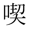 ◎ 康熙字典解釋 【丑集上】【口字部】 喫; 康熙筆畫:12; 頁碼:頁200第19【唐韻】【正韻】苦擊切【集韻】【韻會】喆歷切,??音燩。【說文】食也。【玉篇】啖,喫也。【杜甫·絕句】梅熟許同朱老喫。 又【正韻】飲也。【杜甫·送李校書詩】對酒不能喫。 【廣韻】同??。【集韻】或作??噭。【正韻】亦作毄。 又【集韻】口賣切,音??。喫詬,力諍。 又口戒切,音烗。義同。