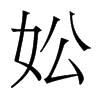 ◎ 康熙字典解釋 【丑集下】【女字部】 妐; 康熙筆畫:7; 頁碼:頁256第14【廣韻】職容切【集韻】諸容切,??音鍾。夫之兄也。 又關(guān)中呼夫之父曰妐。【呂覽】姑妐知之,曰:爲(wèi)我婦而有外心,不可畜。