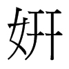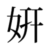 ◎ 康熙字典解釋 【丑集下】【女字部】 姸; 康熙筆畫(huà):9; 頁(yè)碼:頁(yè)261第13【廣韻】五堅(jiān)切【集韻】【韻會(huì)】倪堅(jiān)切,??音硏。媚也,麗也,美好也。【揚(yáng)子·方言】自關(guān)以西謂好曰姸。【韓愈·送李愿歸盤(pán)谷序】爭(zhēng)姸而取憐。【釋名】姸,硏也。硏精於事宜,則無(wú)蚩謬也。【吳越春秋】姸營(yíng)種之術(shù)。 【正字通】說(shuō)文硏有五訓(xùn),惟技也,慧也近理。曰不省錄事,曰無(wú)侵,曰安也,皆非本義。