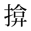 ◎ 康熙字典解釋 【卯集中】【手字部】 揜; 康熙筆畫:13; 頁碼:頁442第15【唐韻】【集韻】【韻會】衣檢切【正韻】於檢切,??淹上聲。【說文】自關以東謂取曰揜。【揚子·方言】揜??,取也。關東曰揜,關西曰??。一曰覆也。【禮·禮器】豚肩不揜豆。又【聘義】瑕不揜瑜,瑜不揜瑕。 又困迫也。【易·困彖】困剛揜也。【禮·表記】篤以不揜。【疏】君子篤厚行於善道,不使揜逼而被困迫也。 又【揚子·方言】滅也。吳揚曰揜。 又揜然,疾歸貌。【漢書·司馬相如傳】揜乎反鄉。 又【唐韻】烏敢切【集韻】【韻會】烏感切,??庵上聲。手揜物也。 【韻會】與掩同。互詳掩字註。