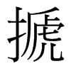 ◎ 康熙字典解釋 【卯集中】【手字部】 搋; 康熙筆畫:14; 頁碼:頁446第04【集韻】【韻會】??丑豸切,褫上聲。析也。【增韻】又拽也。或作拸。又通作扡。互見扡拸二字註。 又【集韻】演爾切,迤上聲。義同。 又余支切,音移。與擨同。見擨字註。又【唐韻】丑佳切【集韻】攄佳切,??與扠同。俗謂以拳觸人曰搋。亦曰撉。互見扠字註。