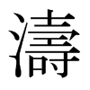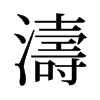 ◎ 康熙字典解釋 【巳集上】【水字部】 濤; 康熙筆畫:18; 頁碼:頁656第12【唐韻】【集韻】【韻會】【正韻】??徒刀切,音陶。【說文】大波也。【郭璞·江賦】激逸勢以前驅,乃鼓怒而作濤。 又【集韻】陳留切,音儔。義同。 又是酉切,音受。與??同。水名,在蜀。或作濤。 又大到切,音導。與燾同。【說文】溥覆照也。 又【韻補】葉陳如切,音除。【柳宗元詩】蒸蒸在家,其父世漁。飮酒不節,死於風濤。