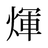 ◎ 康熙字典解釋 【巳集中】【火字部】 煇; 康熙筆畫:13; 頁碼:頁675第27【唐韻】況韋切【廣韻】許歸切【集韻】吁韋切【韻會】吁歸切,??音揮。【說文】光也。【玉篇】燿光也。【易·大畜】剛健篤實煇光。【禮·玉藻】煇,如也。又【樂記】德煇動于內(nèi)。 又【前漢·平帝紀】分京師置前煇,光後丞烈二郡。 又【集韻】火之光。 又【廣韻】同輝暉。【集韻】或作煒。又【集韻】許云切,音熏。【張衡·西京賦】金戺玉階,彤庭煇煇。珊瑚琳碧,瓀珉璘彬。 又【集韻】灼也。【史記·呂后紀】去眼煇耳。【唐韻正】張弨曰:煇,從火,其用皆熏燎之屬。俗攺從光。 又【集韻】許元切,音萱。光也。 又【廣韻】戸昆切【集韻】胡昆切,??音?。【廣韻】赤色。 又【廣韻】胡本切【集韻】戸袞切,??音混。【廣韻】煇煌,光也。【前漢·司馬相如傳】煥炳煇煌。【集韻】本作焜。 又【集韻】呼願切,音楥。本作韗。治鼓工也。【禮·祭統(tǒng)】夫祭有畀煇胞翟閽者,惠下之道也。【註】煇,周禮作韗。謂韗磔皮革之官。 又【集韻】王問切,音運。【周禮·春官·眡祲】掌十煇之法,以觀妖祥,辨吉兇。【註】煇,日光炁也。【張率·舞馬賦】在庸臣之方剛,有從軍之大願,必自茲而展采,將同畀于庖煇。 又與暈,運通。【周禮·春官·保章氏註】日有薄食暈珥。【釋文】暈,本又作煇。亦作運。