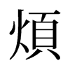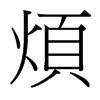◎ 康熙字典解釋 【巳集中】【火字部】 煩; 康熙筆畫:13; 頁(yè)碼:頁(yè)678第03【唐韻】附袁切【集韻】【韻會(huì)】符袁切,??音樊。【說文】熱頭痛也。 又【增韻】不??也。【書·說命】禮煩則亂。又【玉篇】干煩也。【左傳·僖二十九年】敢以煩執(zhí)事。 又【禮·樂記】衞音趨數(shù)煩志。【註】煩,勞也。 又【左傳·定二年】嘖有煩言。【註】煩,言忿爭(zhēng)。 又【增韻】悶也。【史記·倉(cāng)公傳】病使人煩懣。 又鳥名。【司馬相如·上林賦】煩鶩鷛??。【註】徐廣曰:煩鶩,一作番?。【漢書·音義】煩鶩,鳧也。郭璞云:煩鶩,鴨屬。 又地名。【戰(zhàn)國(guó)策】襲燕樓煩數(shù)縣。【註】樓煩,屬鴈門。 又葉符筠切。【陳琳·大暑賦】料救藥之千百兮,祇累熱而增煩。燿靈管之匪念兮,將損性而傷神。 又葉汾洽切。【宋玉·神女賦】淡淸靜其愔嬺兮,性沈祥而不煩,意似近而旣遠(yuǎn),若將來而復(fù)旋。【嵆康·琴賦】更唱迭奏,聲若自然,流楚窈窕,懲躁雪煩。