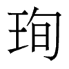 ◎ 康熙字典解釋 【午集上】【玉字部】 珣; 康熙筆畫:11; 頁碼:頁731第06【唐韻】相倫切【集韻】【韻會】【正韻】須倫切,??音荀。【爾雅·釋地】東方之美者,有醫無閭之珣玕琪焉。【註】珣玕琪,玉屬。【說文】玉名。【徐曰】醫無閭,幽州之鎭,在遼東。 又【玉篇】一曰器名。【說文徐註】玉器。 又【集韻】須閏切,音??。玉名。