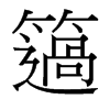 ◎ 康熙字典解釋 【未集上】【竹字部】 簻; 康熙筆畫:19; 頁碼:頁901第49【廣韻】陟瓜切【集韻】張瓜切,??音撾。【說文】箠也。【馬融·長笛賦】裁以當簻,便易持。【註】簻,策也。麤者曰簻,細者曰枚。 又【廣韻】【集韻】??苦禾切,音科。與薖同,草也。又寬大貌。一曰飢意。