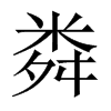 ◎ 康熙字典解釋 【未集上】【米字部】 粦; 康熙筆畫:12; 頁碼:頁909第01注解:【廣韻】力刃切【韻會】良忍切,??音吝。【說文】鬼火也。兵死及馬牛之血爲粦?!静┪镏尽繎痿a死亡之處有人馬血,積年爲粦,著地入草木,如霜露不可見。有觸者,著人體便有光,拂拭卽散無數。 又【韻會】或作燐?!净茨献???論訓】久血爲燐。又【陳思王?螢火論】或謂之燐。【詩?豳風?熠燿宵行?傳】燐也。燐,螢火也?!娟懙柙啤繜鹬⒚蚀藘烧咄ㄖ^之燐?!炯崱炕蜃?。 又【韻會小補】離眞切,音鄰。又里忍切,音嶙。義??同。 【說文】本作?。
