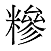 ◎ 康熙字典解釋 【未集上】【米字部】 糝; 康熙筆畫:17; 頁碼:頁912第25【廣韻】【集韻】【韻會】【正韻】??桑感切,音??。【說文】古文糂作糝,以米和羹也。一曰粒也。【周禮·天官】羞豆之實,酏食糝食。【註】取牛羊豕之肉,三如一,小切之,與稻米二肉一合以爲餌,煎之。【莊子·山木篇】孔子窮于陳、蔡之閒,七日不火食,藜羹不糝。【釋名】糝,??也,相黏??也。 又【篇海】雜也。【周禮·天官疏】列國之諸侯大射,大侯九十弓,糝侯七十弓,豻侯五十弓。糝侯者,糝雜也。豹鵠而麋飾下天子大夫。 又【類篇】蘇含切,音三。【正韻】桑錦切,音沁。義??同。