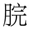 ◎ 康熙字典解釋 【未集下】【肉字部】 脘; 康熙筆畫:13; 頁碼:頁982第22【唐韻】古卵切【集韻】古緩切,??音管。【說文】胃府也。讀若患。【集韻】卽胃脯。【博雅】脘,脯也。【正字通】胃之受水穀者曰脘,臍上五寸爲上脘,臍上四寸卽胃之幕爲中脘,臍上二寸當胃下口爲下脘。 又【集韻】戸版切,音睅。肉也。 又胡官切,音桓。骨脂也。 又胡玩切,音換。義同。
