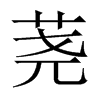 ◎ 康熙字典解釋 【申集上】【艸字部】 蕘; 康熙筆畫:18; 頁碼:頁1031第38【唐韻】【正韻】??如招切,音饒。【說文】草薪也。【左傳·昭十三年】淫芻蕘者。【疏】??燃火之草也。 又蕘花,藥名。【本草註】蕘者,饒也,其花繁饒也。 又【集韻】尼交切,音鐃。菜名。【博雅】蘴蕘,蕪精也。【揚子·方言】陳楚之郊謂之蘴,魯齊之郊謂之蕘。