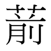 ◎ 康熙字典解釋 【申集上】【艸字部】 葥; 康熙筆畫:15; 頁碼:頁1045第27【唐韻】子賤切,音箭。【說文】山莓也。 又【爾雅·釋草】葥,王??。【註】王帚似藜,其樹可爲(wèi)掃??,江東呼爲(wèi)落帚。 又【集韻】才先切,音前。車葥,藥草。 【說文】作??。