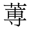 ◎ 康熙字典解釋 【申集上】【艸字部】 蒪; 康熙筆畫:16; 頁碼:頁1049第20【唐韻】匹各切,音粕。蒪苴,大蘘荷名。【楚辭·大招】膾苴蒪只。【註】雜用膾炙,切蘘荷以爲香。 又【集韻】匹沃切,音砲。義同。