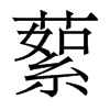 ● 蕠 rú ?ㄖㄨˊ ◎ 麻絮。《史記·張釋之馮唐列傳》:“以北山石爲槨,用紵絮斮陳,蕠漆其閒。” 司馬貞 索隱:“斮陳絮以漆著其閒也。”