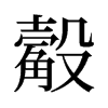 ◎ 康熙字典解釋 【酉集上】【角字部】 觳; 康熙筆畫:17; 頁碼:頁1144第18【唐韻】【集韻】【韻會】【正韻】??胡谷切,音斛。【說文】盛觵巵也。一曰射具。【類篇】觳簏,器名。 又【玉篇】盡也,族也。 又薄也。【管子·地員篇】五粟之狀,剛而不觳。【註】觳,薄也。【唐書·薛蘋傳】治身觳薄。【音義】觳又音確。 又觳觫,懼貌。詳前觫字註。 又【韻會】通作斛。【周禮·冬官考工記】鬲實五觳,庾實二觳。【註】觳讀爲斛,受三斗。鄭康成謂豆實三而成觳,則觳受斗二升。又【集韻】古祿切,音穀。器名。受三斗。 又【集韻】【韻會】【正韻】??轄覺切,音學。【類篇】射具,所以盛隿。 又【爾雅·釋詁】觳,盡也。【註】觳音學。【史記·秦始皇紀】堯、舜飯土塯,啜土鉶,雖監門之養,不觳於此。【索隱】言監門下人飯猶不盡此。【徐廣曰】觳音嚳,推也。 又足跗也。【儀禮·士喪禮】明衣不辟長及觳。【註】長及足尖。 又獸蹄也。【儀禮·特牲饋食禮】主婦俎觳折。【註】折牲蹄爲俎也。【鄭氏曰】觳,後足也。又音確。 又【廣韻】苦角切【類篇】【正韻】克角切,??音確。【廣韻】盛脂器也。 又【正韻】無潤也。【莊子·天下篇】其道大觳,使人憂,使人悲。【郭註】義與瘠同。【韻會】又音覺。 又【集韻】【韻會】【正韻】??訖岳切,音覺。與角同。校也,競也,觸也。【韓非子·用人篇】強弱不觳力。【史記·大宛傳】大觳抵出奇戲。互詳角字註。