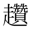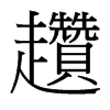 ◎ 康熙字典解釋 【酉集中】【走字部】 趲; 康熙筆畫:26; 頁碼:頁1221第14【廣韻】藏旱切【集韻】在坦切,??音瓚。散走也。 又【集韻】宗蘇切,音租。走也。 又子罕切,音攢。又祖管切,音纂。義??同。 又【廣韻】【集韻】??則旰切,音讚。逼使走也。