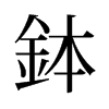 ◎ 康熙字典解釋 【戌集上】【金字部】 鉢; 康熙筆畫:13; 頁碼:頁1302第06【廣韻】【集韻】【韻會】??北末切,音潑。【玉篇】器也。【蘇軾·宸奎閣??】廬山僧懷璉,持律嚴甚。上常賜以龍腦鉢盂,璉對使者焚之,曰:吾法以瓦鐵食,此鉢非法。使者歸奏,上嘉歎。又【梵書】自釋迦相傳有衣鉢,世相付受。後魏天竺國王子號達磨,出家入南海,齎衣鉢航海。至梁詣武帝,隱嵩山少林寺,以其法傳慧可。 又凡物相傳,皆曰衣鉢。【古今名賢集】和凝第十三名及第,後知舉,取范質第十三名,質往謝。凝曰:公文合在中選屈就,此傳老夫衣鉢耳。未幾,凝入相。後質拜相,有登庸衣鉢亦相傳之句。又【蘇軾詩】傳家有衣鉢。【註】家學有素也。 又【廣韻】亦作盋。【前漢·東方朔傳註】盂若盋而大,俗謂盋盂。 又無花果名優曇鉢。【廣志】狀似枇杷,不花而實。 又葉音瞥。【蘇軾·??梅詩】君行適吳我適越,笑指西湖作衣鉢。