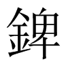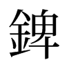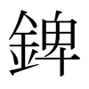◎ 康熙字典解釋 【戌集上】【金字部】 錍; 康熙筆畫:16; 頁碼:頁1309第23【唐韻】府移切【集韻】【韻會】賔彌切,??音??。【說文】鈭錍,斧也。【博雅】錍謂之銛。 又【集韻】班糜切【正韻】逋眉切,??音陂。又【廣韻】匹支切,音磇。義??同。 又【集韻】篇迷切,音??。【爾雅·釋器·金鏃翦羽謂之鍭註】今之錍箭是也。【揚子·方言】凡箭簇胡合嬴者,廣長而薄鐮,謂之錍。【註】錍,普蹄反。【集韻】或作鈚??鎞。 又【集韻】【韻會】??邊迷切,音?。義同。 又【集韻】頻脂切,音??。犁錧也。一曰箭名。本作鈚。