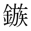 ◎ 康熙字典解釋 【戌集上】【金字部】 鏃; 康熙筆畫:19; 頁碼:頁1319第03【唐韻】【集韻】【韻會】??作木切,音??。【說文】利也。【玉篇】箭鏃也。【書·禹貢·礪砥砮丹傳】砮石中矢鏃。【釋文】鏃,子木反。【賈誼·過秦論】秦無亡矢遺鏃之費。【集韻】或作鉃。 又【集韻】【正韻】??千木切,音蔟。又【集韻】側角切,音捉。又千??切,音湊。義??同。 又【集韻】昨木切,音族。與銼同。 又【集韻】測角切,音娕。鋤也。諺曰:欲得穀,馬耳鏃。賈思勰說:或作鋜。