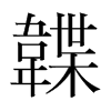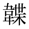 ◎ 康熙字典解釋 【戌集中】【韋字部】 韘; 康熙筆畫:18; 頁碼:頁1394第33【唐韻】【集韻】【韻會】【正韻】??失涉切,音攝。【說文】射決也,所以鉤弦。以象骨、韋系著右巨指。從韋枼聲。【玉篇】指沓也。【詩·衞風】童子佩韘。【傳】韘,玦也。能射御則帶韘。【箋】韘之言沓,所以彄沓手指。【集韻】或作弽。 又【廣韻】蘇協切【集韻】悉協切,??音燮。【廣韻】韘韝,射具。 又【集韻】?韘,帶具。