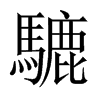 ● 騼 lù ? ㄌㄨˋ ◎ 〔騼?〕野馬。 ◎ 有騼?圖形的軍旗。