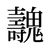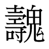◎ 康熙字典解釋 【亥集上】【鬼字部】 魗; 康熙筆畫:24; 頁碼:頁1463第20【廣韻】昌九切【集韻】齒九切,??音醜。【詩·鄭風】無我魗兮。【傳】魗,棄也。【箋】亦惡也。【疏】魗與醜,古今字。【釋文】魗,本亦作??。又作??。 又【廣韻】市流切【集韻】時流切,??音讎。義同。