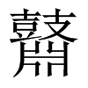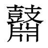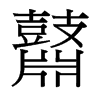 ◎ 康熙字典解釋 【亥集下】【鼓字部】 鼘; 康熙筆畫:21; 頁碼:頁1526第26【正韻】縈圓切,音淵。【說文】鼓聲也。【詩·商頌】鼗鼓鼘鼘。 又【廣韻】【集韻】??於巾切,音駰。又【集韻】一均切,音蜵。義??同。