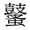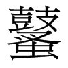 ◎ 康熙字典解釋 【亥集下】【鼓字部】 鼜; 康熙筆畫:23; 頁碼:頁1527第03【廣韻】【集韻】【韻會】??倉歷切,音戚。【玉篇】守夜鼓也。【周禮·地官·鼓人】軍旅夜鼓鼜。【釋文】杜子春讀爲戚。【疏】在軍警戒急在於夜,言鼜者,音同憂戚,取軍中憂懼之意。 又【集韻】七到切,音操。義同。